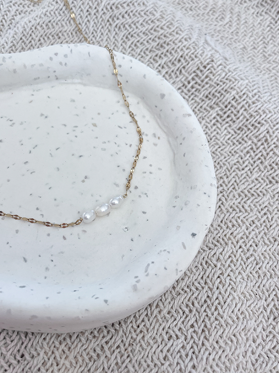 Destino is een subtiele ketting gemaakt van heel fijn jasseron. De zoetwaterparels maken de ketting zowel klassiek als eenvoudig te combineren. Destino is elegant en een mooie toevoeging aan je necklace party. Hij draagt vrij hoog vanwege de korte lengte van 40 cm (excl. 4 cm verlengketting).